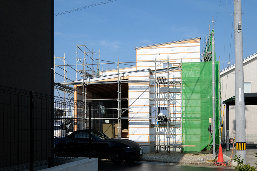 2階の手すりがついています。視線が抜け、のびやかな空間になるように。 階段手すりもスタンバイ。 &n …