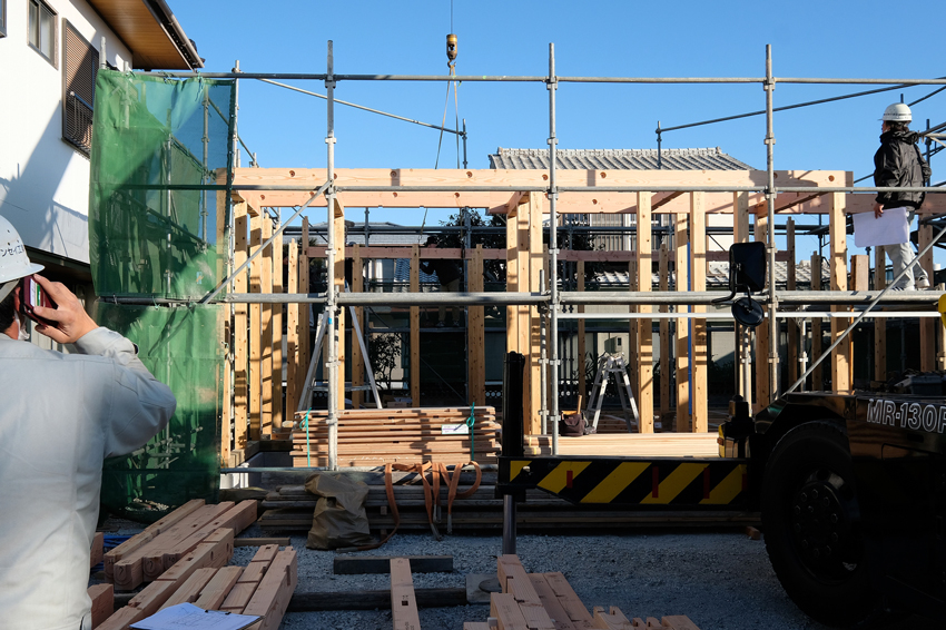 棟上げは明日ですが、潮の関係(満潮に向かう時間帯に上棟する。)もあり今日中にカタチになります。